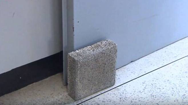 이렇게 문이 닫히는 것을 방지하기 위해서 놓여 있던 돌을 학생이 들어서 밖으로 던진 것으로 조사됐습니다.