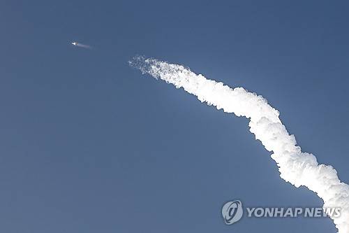 epa10982449 The SpaceX mega rocket Starship leaves a contrail after taking off from a test base Boca Chica, Texas, USA, 18 November 2023. This is the second attempt to test mega rocket Starship. EPA/ADAM DAVIS