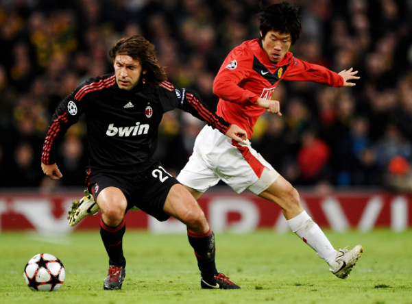 또한 이탈리아 세리에A AC밀란의 중원 플레이메이커 안드레아 피를로를 경기장에서 완전히 지워버린 일화도 유명하다. 지난 2009/10시즌 챔피언스리그 16강전에서 맨유와 만난 AC밀란은 당대 최고의 플레이메이커 피를로를 앞세워 경기를 지배하려했다. 그러나 맨유의 감독 알렉스 퍼거슨 경은 박지성에게 피를로만 막을 것을 주문했고 박지성은 1, 2차전 내내 피를로만 바라보며 그를 압박해 밀란의 공격 줄기를 완전히 끊어버렸다.