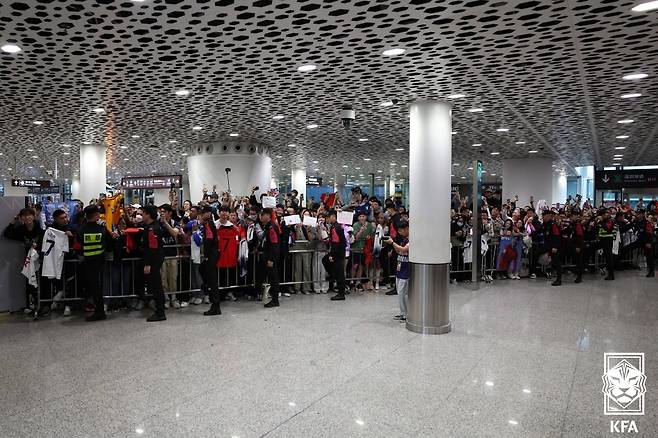 위르겐 클린스만 감독이 이끄는 한국 대표팀은 오는 21일(한국시간) 오후 9시 중국 선전 유니버시아드 스포츠센터에서 열리는 2026 북중미 월드컵 아시아 2차 예선 중국과의 C조 2차전 원정 경기를 위해 19일 오후 중국 선전 바오안 공항을 통해 입국했다. 선수단 대부분이 마스크를 쓰고 천천히 호텔로 가기 위한 버스에 이동한 가운데 중국 팬들이 엄청난 환영을 해서 눈길을 끌었다.