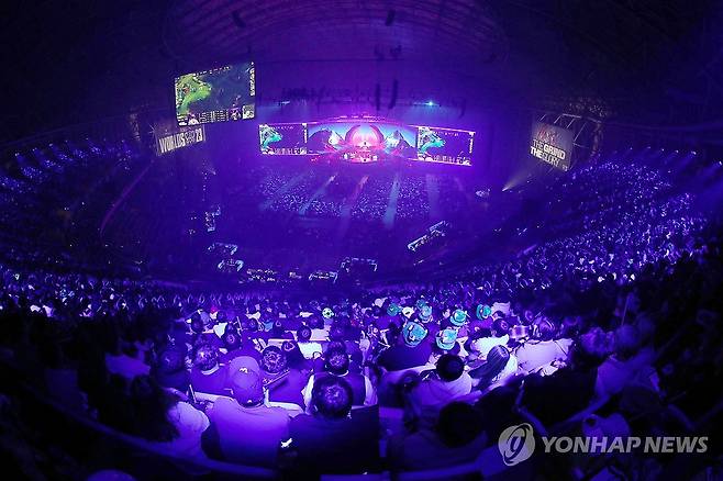 (서울=연합뉴스) 김성민 기자 = 19일 오후 서울 구로구 고척스카이돔에서 열린 2023 리그 오브 레전드(LoL) 월드 챔피언십(롤드컵) 결승전 T1과 웨이보 게이밍의 경기에서 팬들이 응원을 하고 있다. 2023.11.19 [사진공동취재단]