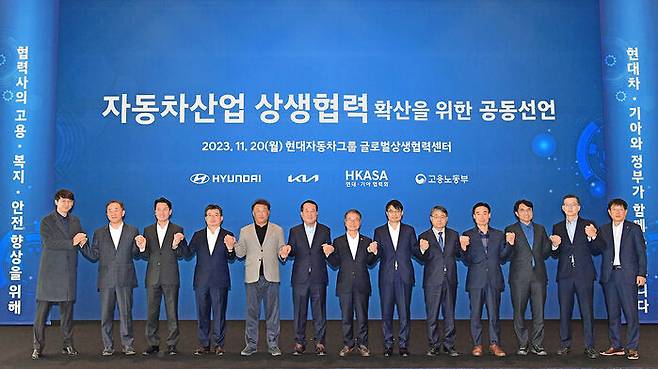 고용노동부와 현대차·기아는 경북 경주에 있는 현대차그룹 글로벌상생협력센터에서 '자동차산업 상생협력 확산을 위한 공동선언식'을 개최했습니다.
