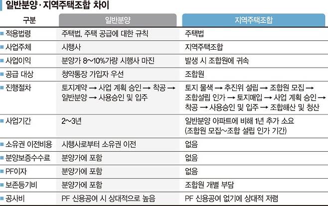 20일 정비·부동산업계에 따르면 분양가가 치솟으면서 일반분양보다 저렴한 지역주택조합을 통한 내집 마련 수요가 늘고 있다. 국토교통부에 따르면 지난해 말 기준 전국의 지역주택조합 추진 사업장은 600개가 넘는다. 1년 새 100개 가까이 증가했다. 지역주택조합은 주민이 조합을 결성해 직접 토지를 매입하고, 시공사를 선정하는 등 시공사 역할을 맡아 아파트를 짓는 일종의 '주택 공동구매' 제도다. 주택법에 근거를 두고 있다. 금융비용 등을 절감할 수 있어 일반분양 대비 분양가가 저렴한 것이 특징이다. 또 청약통장 유무 등 자격 여부를 따지지 않고, 무주택자 또는 1주택자면 누구나 참여할 수 있다. 다만 탈퇴가 까다롭고, 분담금 반납을 전액 보장하지 않는다.