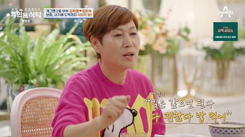 임미숙은 "김학래는 보증을 진짜 많이 섰다. 또 보증빚, 도박빚, 사기빚, 사업빚 등이 100억이 됐다. 생 빚을 갚는다면 수도꼭지 같이 눈물이 쏟아진다. 어느날 문 열고 나가는데 엄마가 같이 울고 있더라. 근데 엄마가 '미숙아 빚은 갚으면 된다. 밥 먹어라' 하기에 정신차리고 중국집을 시작했다"라고 이야기했다.