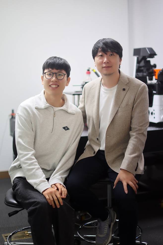 | ▲ 사진 오른쪽부터 DGIST 화학물리학과 서대하 교수, 박지성 석박사통합과정생 |
