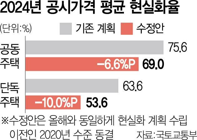 내년 공시가격 현실화율은 올해와 같은 △공동주택 평균 69.0% △단독주택 평균 53.6%가 적용된다.
