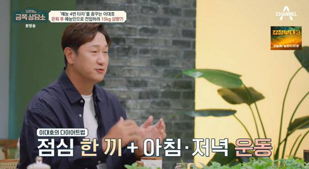 이대호는 몰라보게 살이 빠진 모습으로 등장해 눈길을 끌었다. 이대호는 15kg을 감량했다며 "일단 안 먹어야한다. 점심은 한 끼를 먹고 아침, 저녁으로 계속 운동해서 뺐다"고 밝혔다.