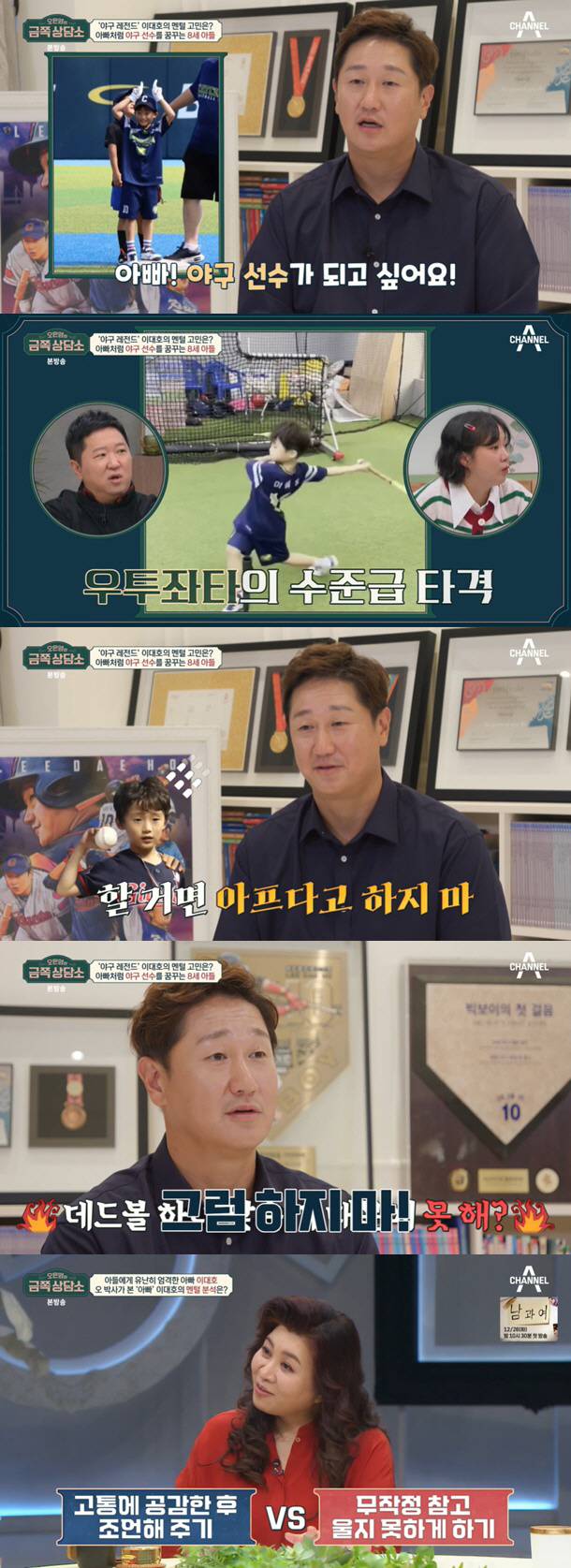 이야기를 듣던 오은영 박사는 "이대호는 아이가 아프다고 할 때 공감하고 이해해주면 아이가 무너질까 생각한다"고 분석했다. 이어 "아픈 것은 맞지만 야구선수 하려면 이겨내야 해!"라고 공감하는 것과 "울지도 마!"는 엄연히 다른 것이라 일침을 가했다. 그러면서 이대호의 마음에 자리 잡은 "강하게 버텨내야 한다"는 생각이 자녀들에게도 큰 영향을 미칠 수 있다고 주의를 줬다.