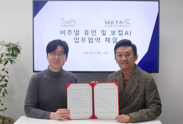 드라마 및 버추얼 휴먼 콘텐츠 제작사 스튜디오메타케이(대표 김광집)와 보컬 생성 AI 스타트업 오드아이(대표 최순범)는 버추얼 휴먼의 보컬 AI 생성 및 음악 창작 시장의 경쟁력 확보를 위해 업무협약(MOU)을 체결했다고 밝혔다.