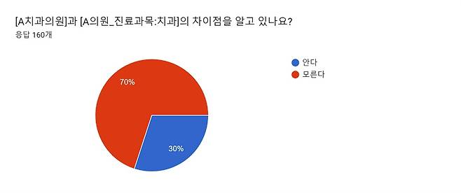 | ▲ 시민 160명을 대상으로 한 ‘병·의원 전문의 판별’에 관한 설문 결과다. 전문의 판별 간판의 차이에 대해 ‘모른다’는 응답이 70%에 달했다. |