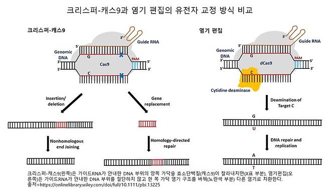 유전자 편집 도구는 두개의 RNA 분자로 구성돼 있다. 하나는 DNA에 있는 특정 염기를 편집하는 명령이 담긴 메신저 RNA 분자이고, 다른 하나는 이 도구를 표적 유전자로 안내하는 가이드 RNA 분자다.