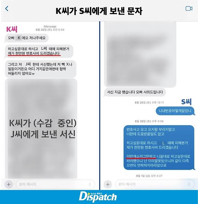 K씨는 S씨의 움직임을 전해 들었다. 이에, 돈으로 막을 계획을 세웠다. 실제로 K씨는 S씨에게 문자를 보냈다. "1,000만 원을 주겠다"며 S씨를 달랬다.