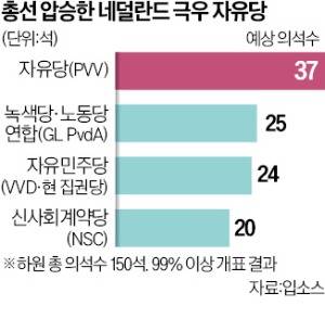 22일(현지시간) 치러진 네덜란드 조기 총선에서 반(反)이민 및 반이슬람을 주장하는 극우 정당 자유당(PVV)이 압도적인 승리를 거둔 것으로 나타났다.