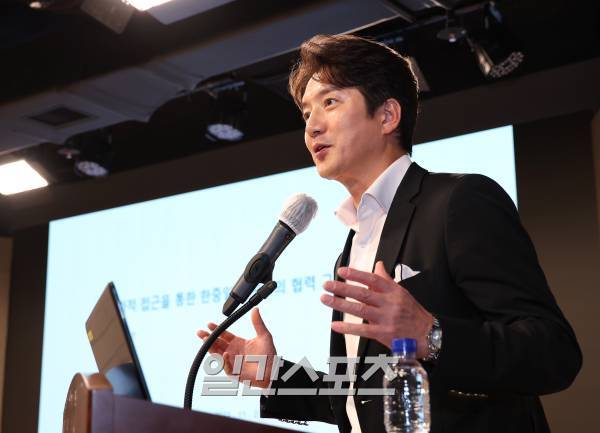 첫번째 연사로 나온 배우 정준호가 '문화적 접근을 통한 한중일 아시아의 협력 그리고 미래'라는 주제로 강연을 하고 있다.