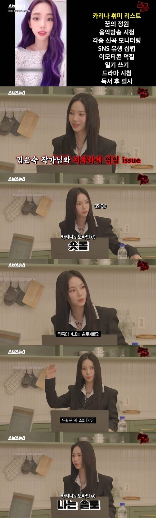 [마이데일리 = 박서연 기자] 그룹 에스파 카리나가 최근 중독된 것들을 언급했다.
