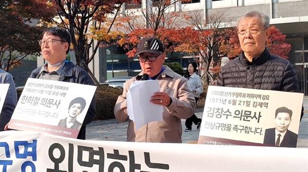 | ▲ 진상규명 운동을 하고 있는 이은희 교수(왼쪽) |