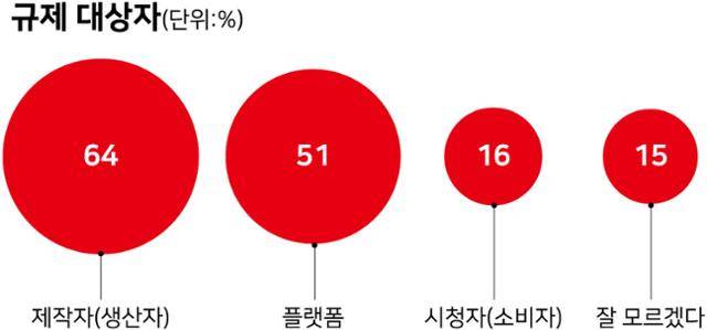 규제 대상으로는 숏폼 콘텐츠 제작자(생산자)가 64%로 가장 높아