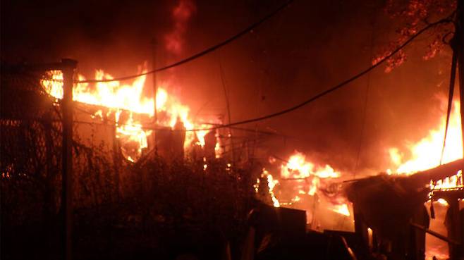 어젯(24일)밤 10시 50분쯤 부산 금정구 노포동 한 주거용 비닐하우스에서 불이 났습니다.