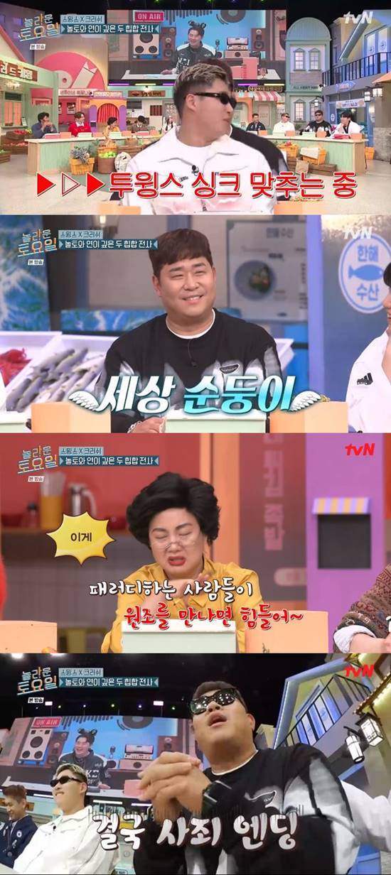 25일 방송된 tvN 예능 프로그램 '놀라운 토요일'(이하 '놀토')에는 가수 스윙스, 크러쉬가 게스트로 출연했다.