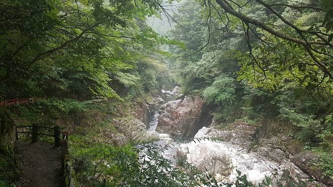 히로시마에서 북서쪽으로 멀지 않은 곳에 '산단쿄(三段?)'란 협곡이 있다. 트레킹 명소인 산단쿄는 '히로시마에 이런 곳이 있었나' 싶을 정도로 울창한 삼림, 경치 좋은 폭포와 계곡이 줄을 이어 있다. 카누도 대여할 수 있고 도보로 걷기에도 좋을 정도로 잘 정비돼 있다. 산과 계곡을 좋아하는 여행객이라면 매력적인 곳이다. 시골 특유의 한적함이 더해 고요함을 즐기며 산행을 다녀올만 하다. 산단쿄 입구 주차장에서 구로부치(黑淵)로 불리는 물가까지 도보로 걷다보면 다양한 풍경을 눈에 담고 사진으로 저장하기에 충분하다. 히로시마를 가 봤지만 산단쿄를 놓쳤다면 가볼만한 비경이다. 도시와 가까운 곳에 삼나무 원시림이 빼곡하게 들어선 이 곳의 매력은 직접 둘어봐야 알 수 있다.