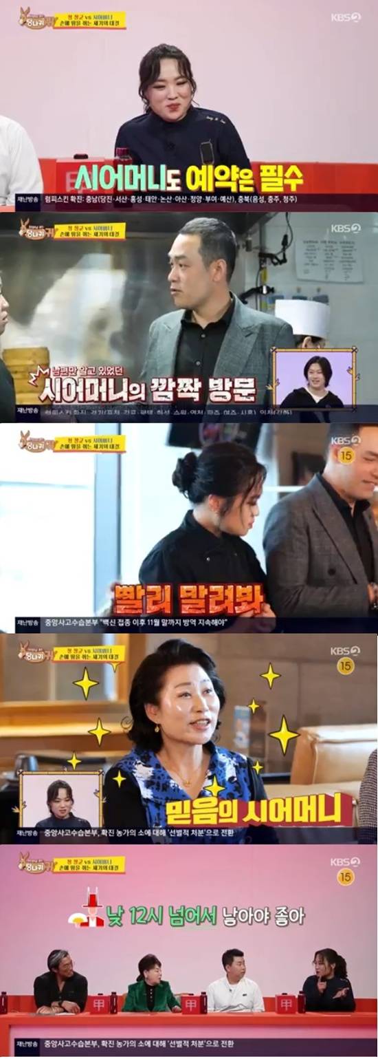 26일 방송된 KBS 2TV '사장님 귀는 당나귀 귀'에서는 정지선이 시어머니에게 음식을 대접하는 모습이 전파를 탔다.