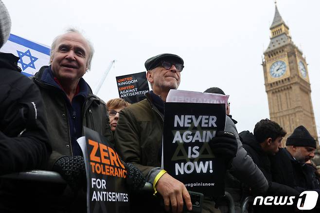 (런던 로이터=뉴스1) 김성식 기자 = 26일(현지시간) 영국 런던에선 지난달 발발한 팔레스타인 무장정파 하마스와 이스라엘 간 전쟁을 계기로 최근 급증한 반(反)유대주의를 규탄하는 시위가 개최됐다. 2023.11.26.