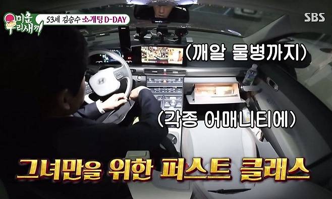 소개팅 상대를 만나기에 앞서 세심하게 조수석을 세팅하는 김승수의 모습에 스튜디오의 모두가 '준진남(준비에 진심인 남자)'이라며 놀라워했다. 함께 식사할 식당에 김종민과 미리 방문해 메뉴까지 먼저 먹어본 김승수의 모습이 비춰지자 母벤져스는 모두 입을 다물지 못했다.