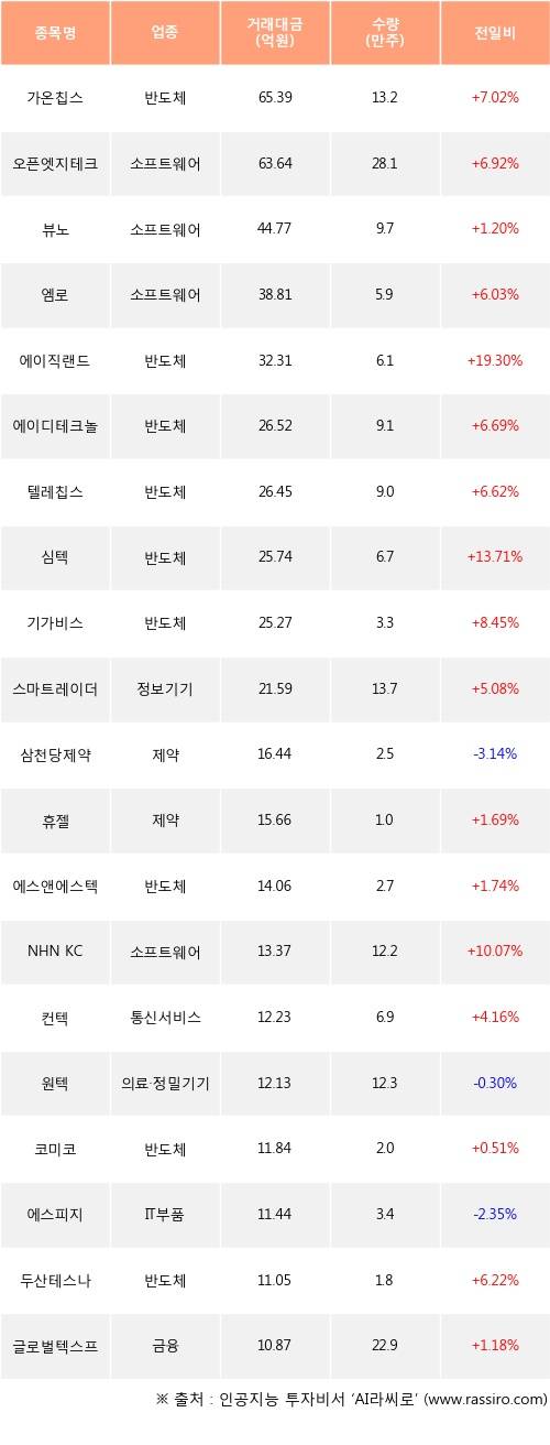 27일, 코스닥 기관 순매수상위에 반도체 업종 9종목
