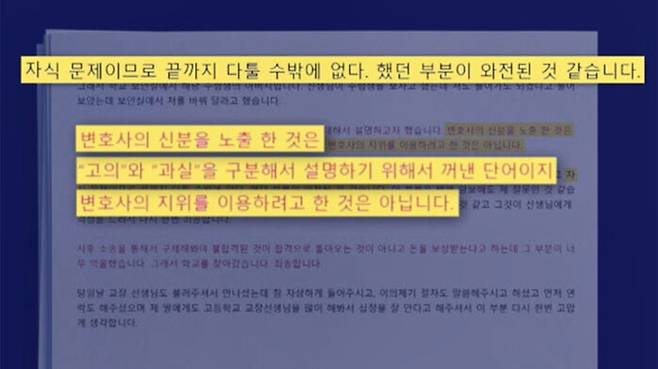 자식 문제이므로 끝까지 다툴 수밖에 없다고 했던 부분이 와전된 것 같다고 해명하며, 변호사임을 밝힌 것도 법적인 부분을 설명하려다 노출됐을 뿐, 변호사 지위를 이용하려고 한 것은 아니라고 주장했습니다.