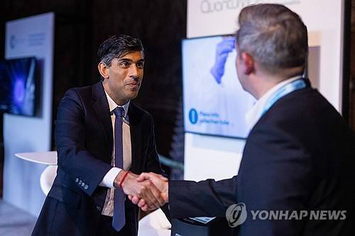 epa10997648 British PPrime Minister Rishi Sunak (L) visits the stand of QuantumMDX, and looks at a diagnostic machine at the UK Global Investment Summit at Hampton Court Palace in London, Britain, 27 November 2023. The government said it is unveiling 29.5 billion GBP (37.2 billion US Dollar) of new investment for the summit, though at least 10 billion GBP of the investment had already been announced. EPA/Chris Ratcliffe / POOL