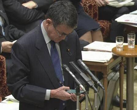 고노 다로(河野太郎) 일본 디지털상이 국회에서의 답변 도중 스마트폰을 꺼내 검색을 하다가 담당 상임위원장의 제지를 받았다.