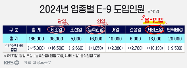 정부는 어제(27일) 외국인력정책위원회를 열고 이같은 '2024년 외국인력 도입·운용 계획안'과 '고용허가제 신규 업종 허용 추진 방안'을 확정했습니다.