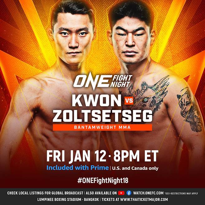 내년 1월 13일 태국 방콕 룸피니스타디움에서 열리는 '원 파이트 나이트(ONE FIGHT NIGHT) 18'에서 몽골 복싱 국가대표를 지낸 신에착트가 졸체체그(27)와 맞붙는다.