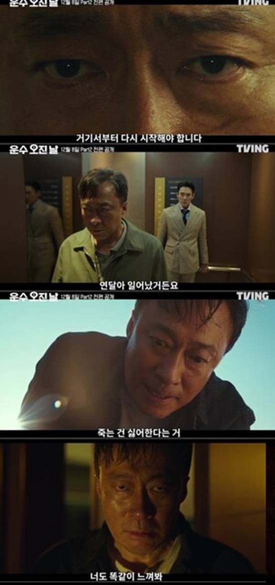 총 10부작인 '운수 오진 날'은 파트1(1~6회)가 지난 20일 tvN에서 첫 방송됐다. 이후 24일 티빙을 통해 전편이 공개됐다. 다음 이야기에 대한 궁금증이 최고로 달한 가운데, Part2 예고편은 오택의 이유 있는 변화를 담고 있다. 파트2(7~10화)는 오는 12월 8일 공개된다.
