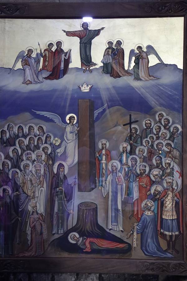가장 눈에 띄는 것이 성녀 니노의 나무 기둥 기적을 묘사한 그림이다. 이것은 즈와리 수도원 이야기가 아니고, 스베티츠호벨리 성당 건축과 관련이 있는 이야기다.