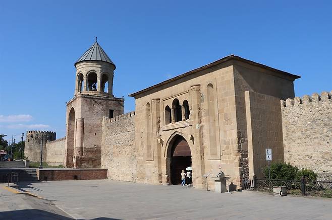 북쪽 카프카스 산맥에서 흘러내리는 아라그비강이 서쪽 튀르키에서 발원한 꽈리강과 만나는 지점 안쪽으로 스베티츠호벨리 대성당이 보인다. 수도원 밖으로는 성벽처럼 높은 담장이 둘러처져 있었다. 그러나 세월 속에 무너져 일부 잔해만 남아 있다. 이제 우리는 스베티츠호벨리 대성당으로 내려간다.