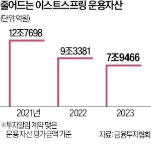 이스트스프링자산운용의 지난 3분기 말 기준 운용자산은 7조9466억원이다. 2년 전(12조7698억원)에 비해 37.8% 급감했다. 3분기 말 기준 영업수익(매출)은 164억원, 영업이익은 32억원, 순이익은 24억원을 기록했다.