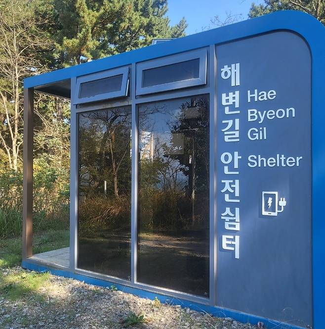 | ▲ 태안국립공원 탐방로의 해변길안전쉼터. 보행자체가 목적이 보다는 여가 보행의 측면을 고려하여 탐방로의 조성 및 설비에 유니버설디자인 개념이 내포되어 있다. |