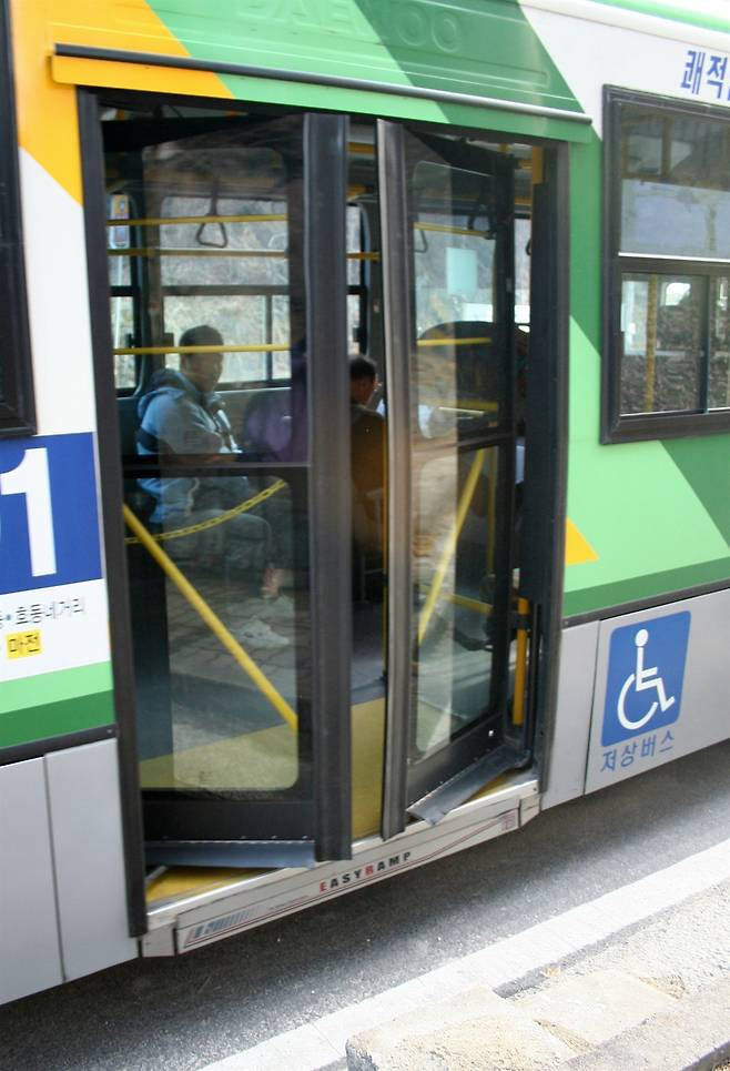 | ▲ 유니버설디자인을 적용한 저상버스. 교통약자인 장애인, 고령자, 임산부, 영유아를 동반한 사람, 어린이 등 일상생활에 불편을 느끼는 사람 뿐만 아니라, 누구나 타고 내리는데 편리한 교통편의를 제공한다. |