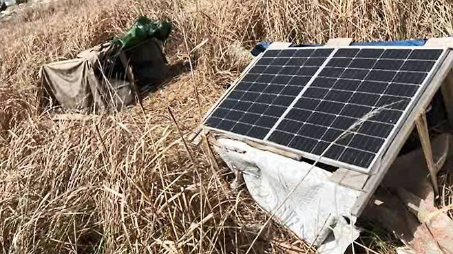 갈대밭 사이엔 태양광패널이 있고, 그 아래엔 보이스피싱 번호 중계기가 있습니다.