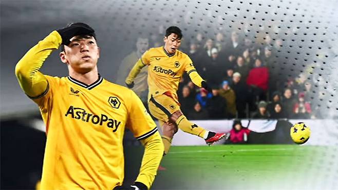 울버햄튼이 1대 0으로 끌려가던 전반 14분, 역습 기회에서 날린 중거리슛이 크로스바를 때렸습니다.
