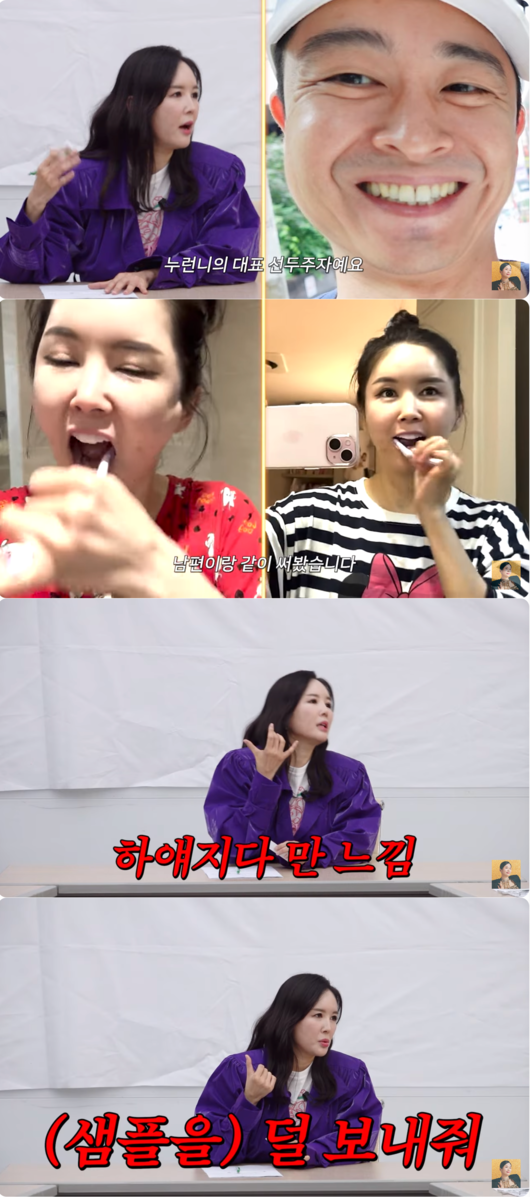 장영란은 치약에 대해 “‘제가 써보고 난 다음 아니면 바로 말씀드릴게요’하고 저는 써봤어요. 남편이랑 같이 써봤다. 누런니의 대표 선두주자다. 술 담배 다 하지. 엄청 누럽니다”라고 말해 웃음을 안겼다.