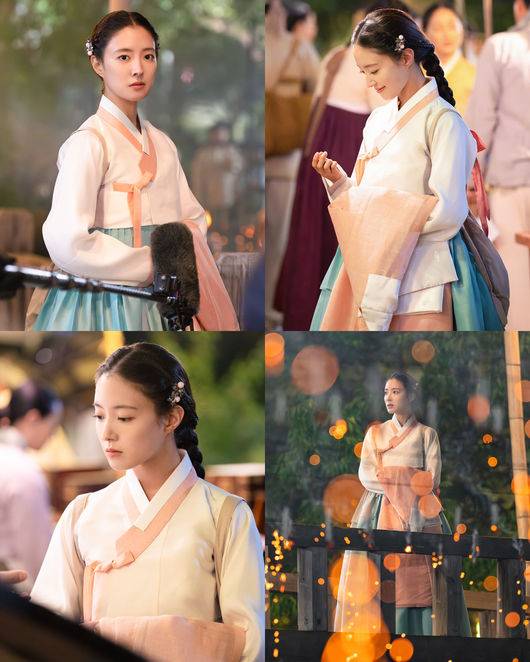 사진 속 이세영의 청초한 외모와 고운 미소가 시선을 사로잡았다. 그는 상아색 저고리에 옥색 치마를 완벽 소화하며 과연 사극 여신 다운 면모를 뽐냈다. 특히 다리 위에서 낙화놀이를 감상하는 이세영의 모습은 한 폭의 그림 같은 장면을 완성했다.