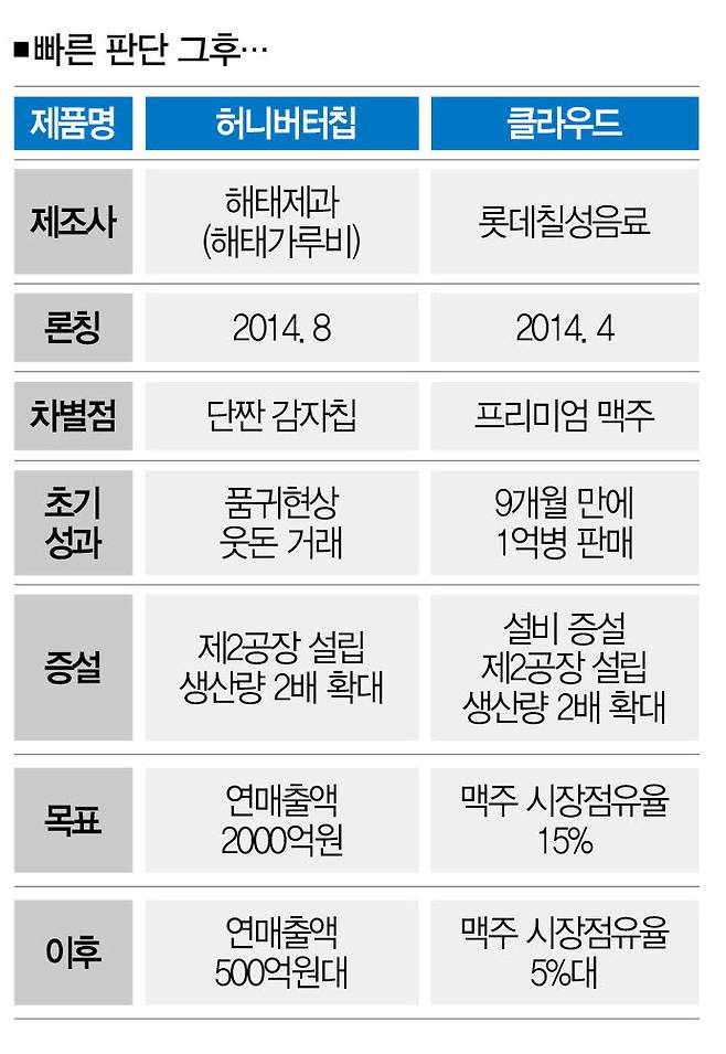 두 사례에서 볼 수 있듯 빠른 의사결정이 반드시 성과로 이어지는 건 아니다. 너무 빨리 터뜨린 축포는 되레 부메랑으로 돌아올 수 있다. 오세조 연세대(경영학) 교수는 이렇게 지적했다. "한국 소비자는 변화무쌍하고 까다롭다. 반짝 인기를 끌더라도 장수제품으로 자리를 잡는 건 쉽지 않다.