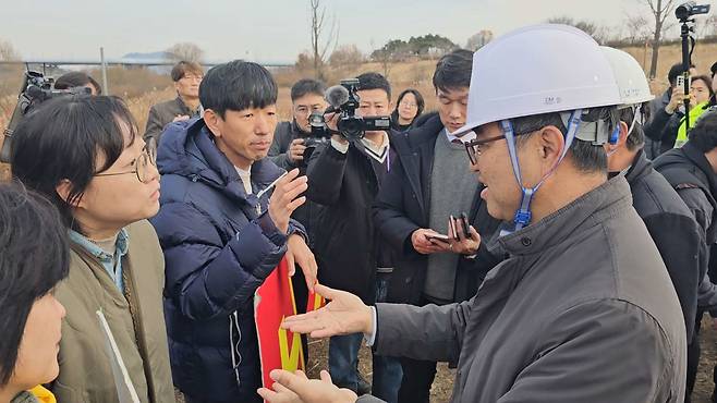 보철거를위한금강영산강시민행동(이하 시민행동) 등은 한화진 장관에게 이날 발표한 항의 성명을 직접 전달하려 했지만, 환경부 관계자가 대신 수령을 했다. 시민행동은 '4대강 사업으로 회귀하는 윤석열 정부 규탄한다'는 제목의 성명을 통해 "세종보 담수 계획 철회하고 4대강 보 처리방안 마련하라"고 촉구했다.