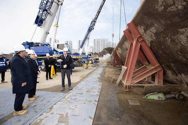 | ▲ 29일 오전 11시경, 한화진 환경부장관은 세종보 재가동 공사 상황을 알아보려고 현장을 시찰했다. |