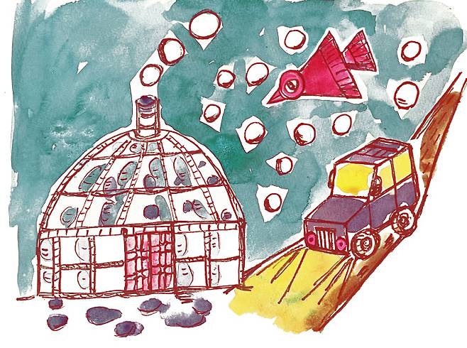 겨울이 생긴 신화를 들려줄까? 시베리아 나나이족 신화엔 원래 하늘에 태양이 3개가 있었대. 얼마나 뜨거웠겠어. 동물들이 불타 죽자 배에 돌을 집어넣어 물속으로 가라앉게 했대. 물고기가 그래서 생긴 것. 동쪽에 사는 한 용맹한 장수가 있었는데, 아홉 개 골짜기를 넘어 동트는 장소에 도착. 두 개의 해를 화살로 떨어뜨린 뒤에야 첫눈과 함께 겨울이 찾아왔대.