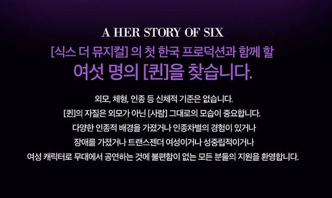| ▲ <식스 더 뮤지컬>의 한국 공연 제작사 아이엠컬처가 2022년 올린 오디션 공고문 중 일부. |