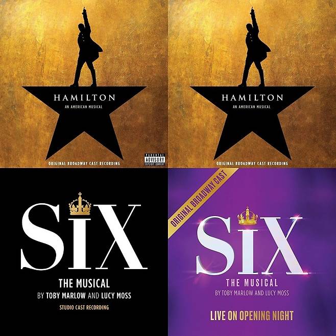 | ▲ 뮤지컬 <해밀턴>과 <식스 더 뮤지컬>의 앨범 표지 |