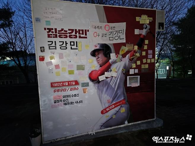 팬들의 메모지가 가득했던 곳은 역시나 20년 넘게 한 팀에서 뛴 김강민의 포토존이었다. 포토존 한쪽에는 계속 방문할 팬들을 위해 메모지와 펜 등이 준비된 상태였고, 현장을 방문한 팬들은 어두운 상황 속에서도 김강민을 위한 메시지를 작성하고 있었다.